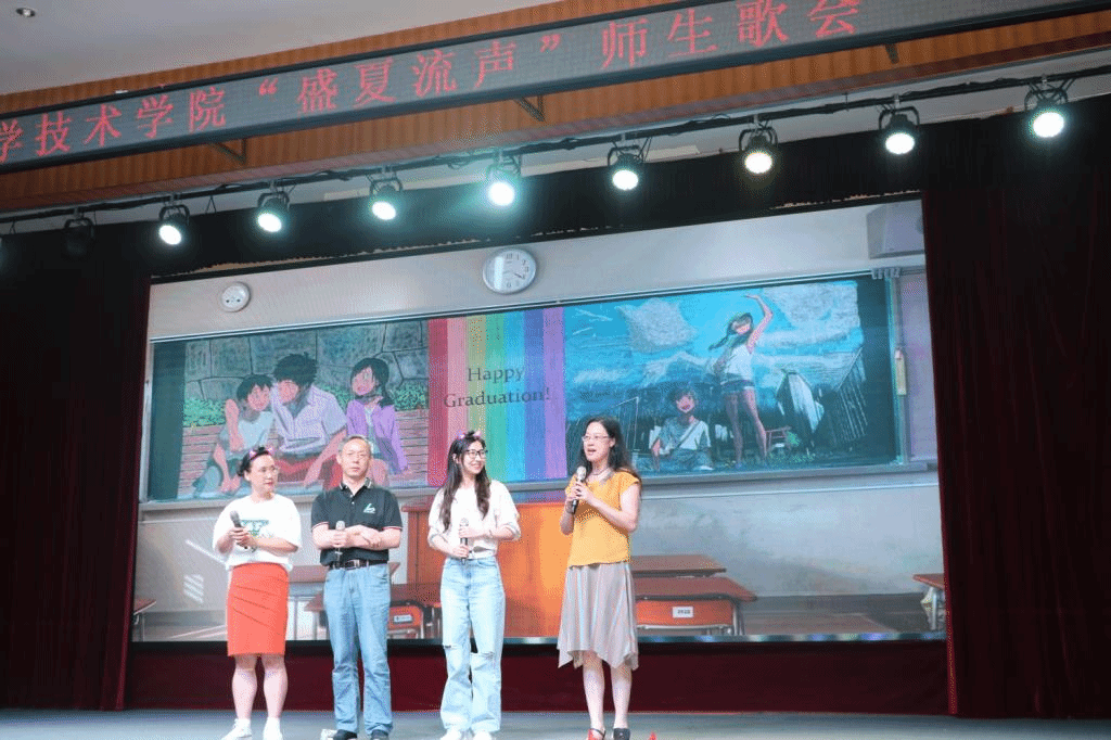 一首歌曲《精忠报国》,铿锵有力;一支旋律《知道不知道》,柔情似水。伴随着毕业生辅导员陈超奇、刘莉的倾情演唱,生科公司党委副书记范金凤,毕业班班主任李姗、谢婷婷、李明顺、祁高富、陈振民和辅导员老师们接续上台给毕业生同学们送上祝福。生科1701班班主任李姗深情回顾了四年前和班级同学见面的场景,每一位同学大学四年都牢记在她心中,她祝福大家“前程似锦!常回家看看!”