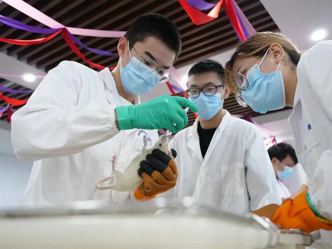 同学们分批进入动物中心操作间,现场观摩华联科模型动物研究院技术朱凯老师示范的心肌缺血再灌注损伤的模型操作过程。随后,大家来到课堂,在华联科模型动物研究院研发技术导师焦成老师的指导下,进行了大小鼠的尾静脉注射实操训练。