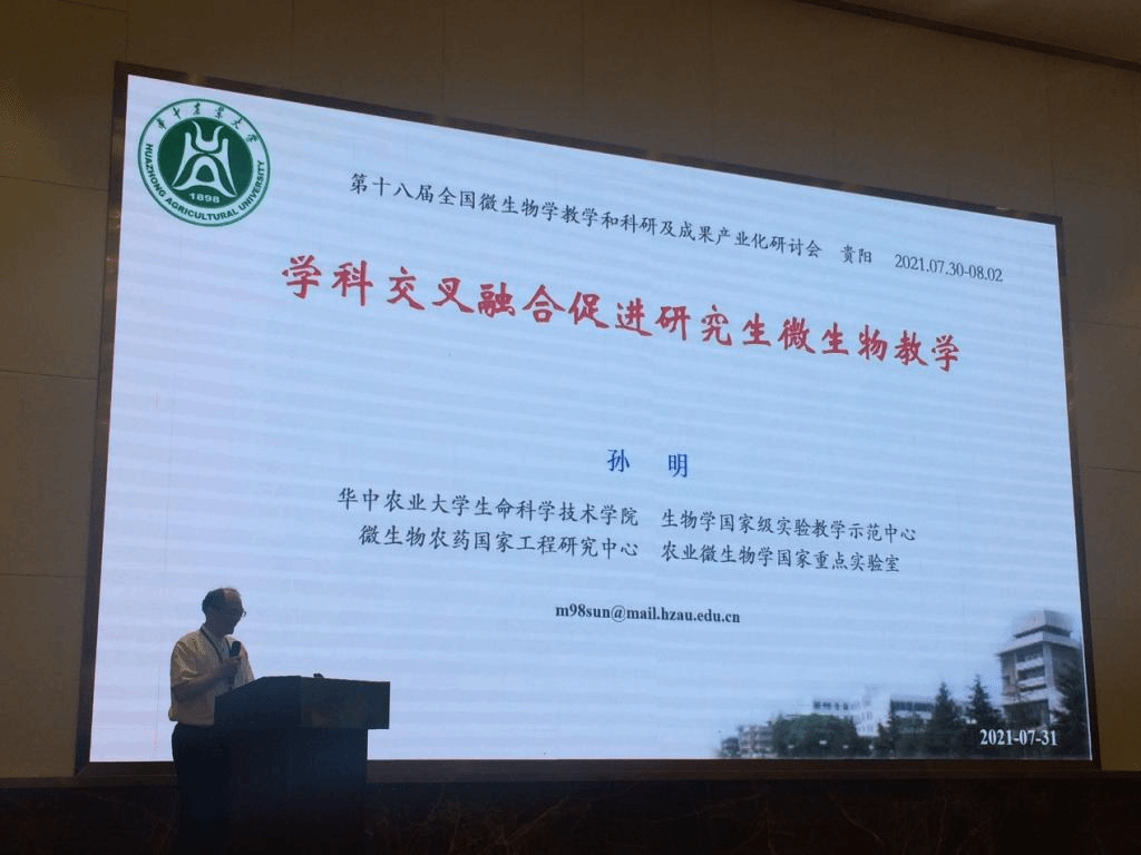 7月31日上午,公司副经理孙明教授在大会开幕式上致辞,并作了题为《学科交叉融合促进研究生微生物教学》的报告。他认为丰富的学科交叉环境和宽广的团队研究背景,能够拓宽教师研究方向或学科的多元化与交叉融合,进而最大限度地满足高级微生物学对知识系统性和前沿的需求,同时满足多种学科对高级微生物学课程体系的要求。