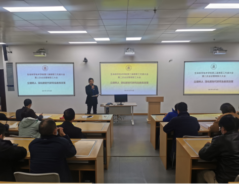 大会第二项由党委书记和希顺对研究生教育改革工作进行总结。他介绍了新时代研究生教育改革的背景,并强调了下一阶段的工作重点,一是在研究生规模逐步壮大的趋势下注重培养“品优、业专、术强”的高素质优秀拔尖创新人才;二是贯彻国家“立德树人、服务需求、提升质量、追求卓越”的改革目标,进一步推进分类培养,加强产学研融合,加强与企业合作,培养专业型研究生的实践能力;三是加强研究生导师“立德树人”育人能力,通过构建“师生共同体”营造良好的三全育人氛围。