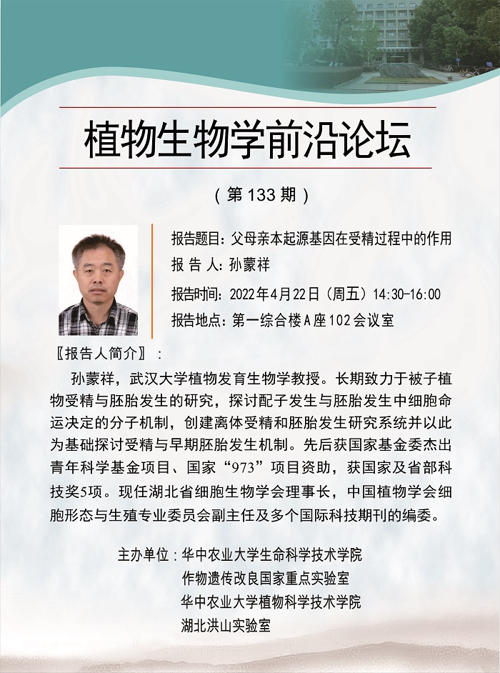 活动时间 报告题目 父母亲本起源基因在受精过程中的作用