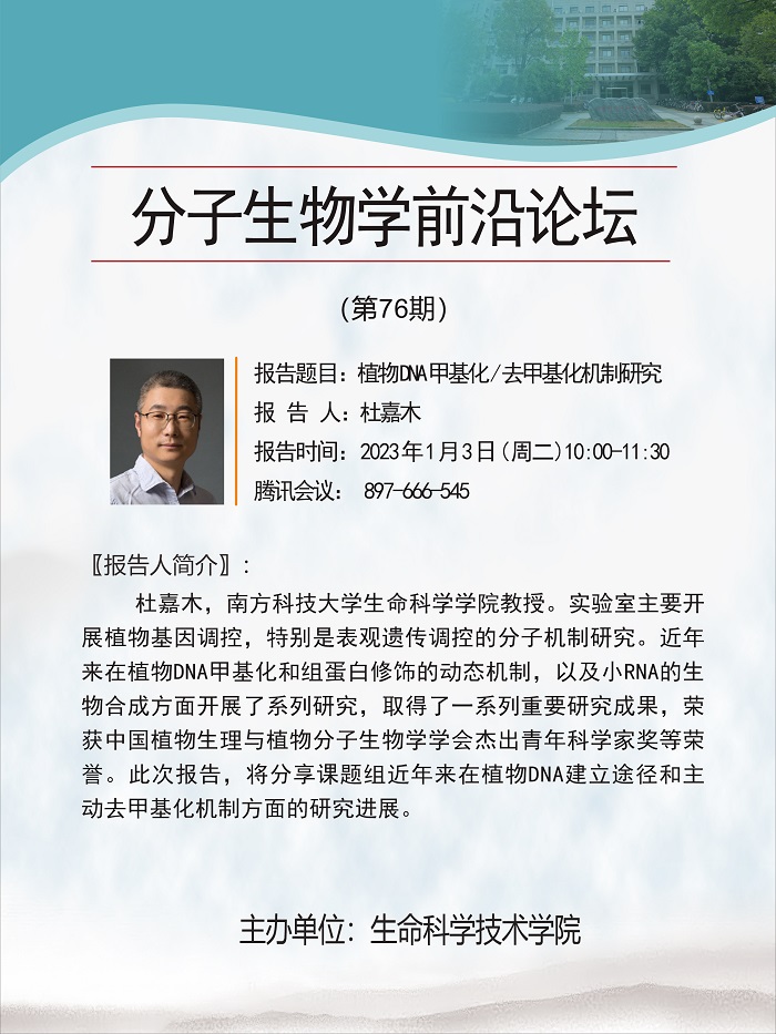 活动时间 报告题目 植物DNA甲基化/去甲基化机制研究