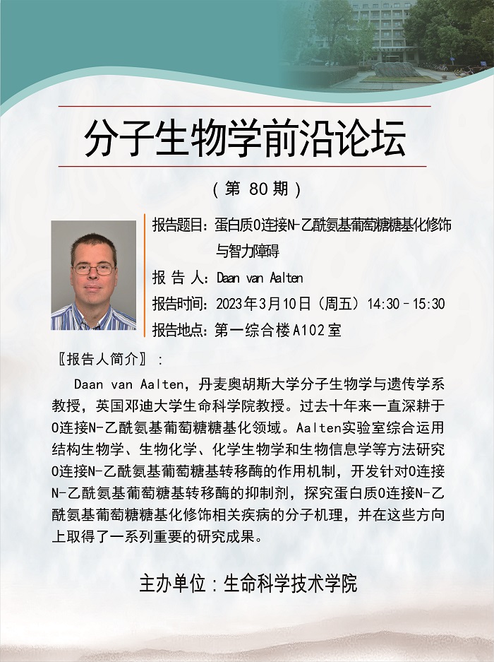 活动时间 报告题目 蛋白质O连接N-乙酰氨基葡萄糖糖基化修饰与智力障碍