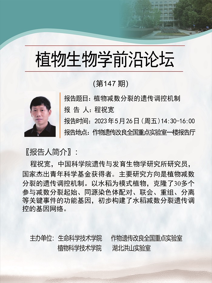 活动时间 报告题目 植物减数分裂的遗传调控机制