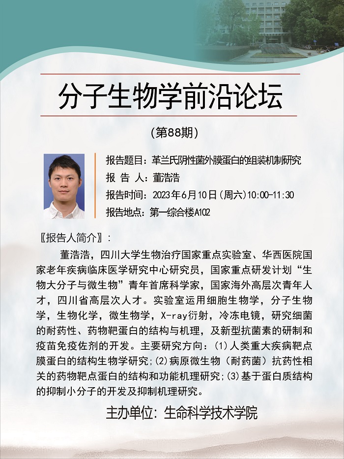 活动时间 报告题目 革兰氏阴性菌外膜蛋白的组装机制研究