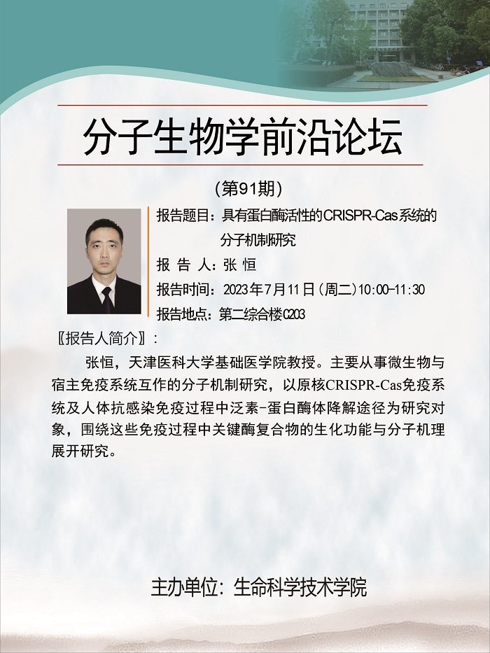 活动时间 报告题目 具有蛋白酶活性的CRISPR-Cas系统的分子机制研究
