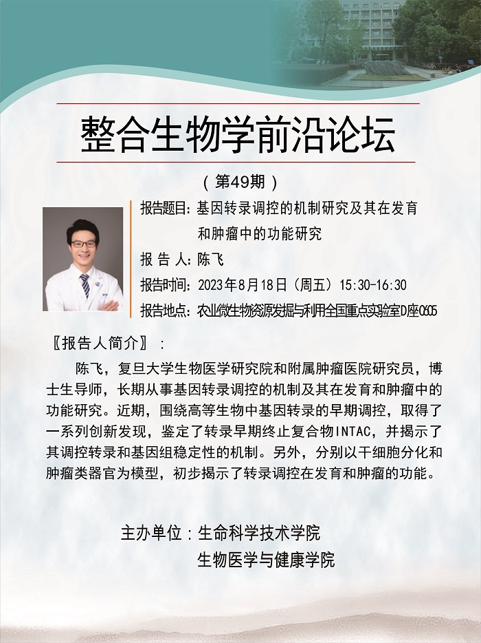 活动时间 报告题目 基因转录调控的机制研究及其在发育和肿瘤中的功能研究