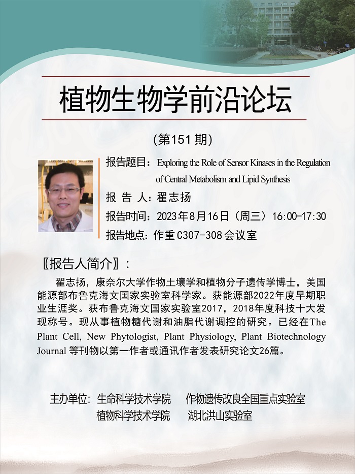 活动时间 报告题目 Exploring the Role of Sensor Kinases in the Regulation of Central Metabolism and Lipid Synthesis