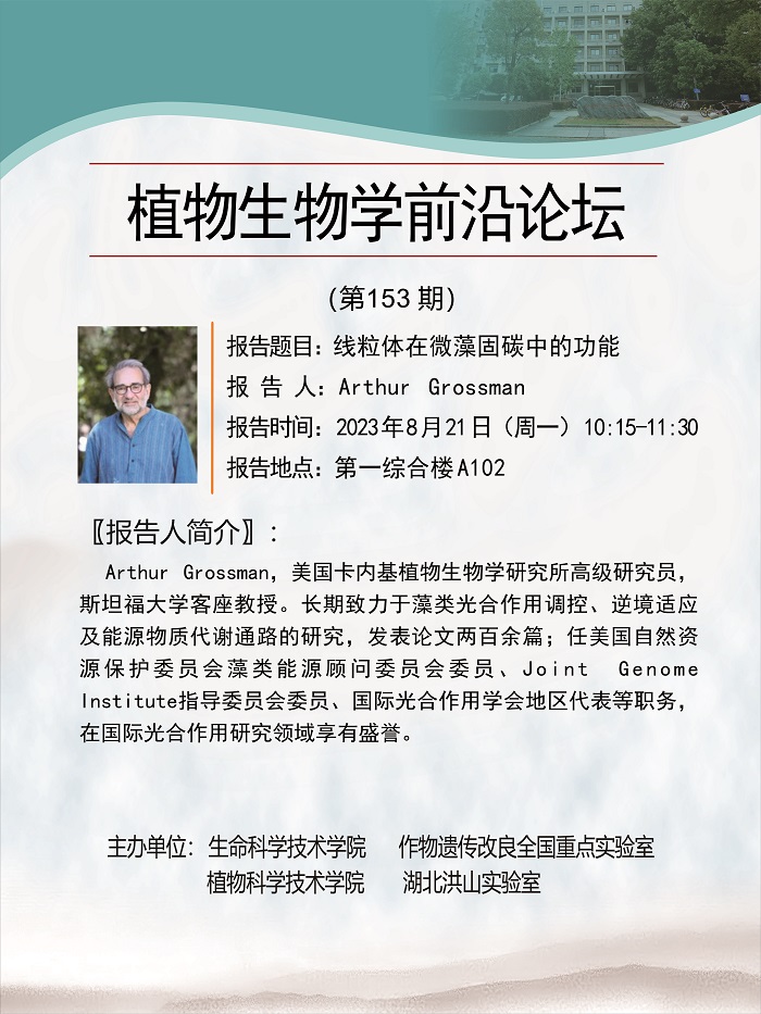 活动时间 报告题目 线粒体在微藻固碳中的功能