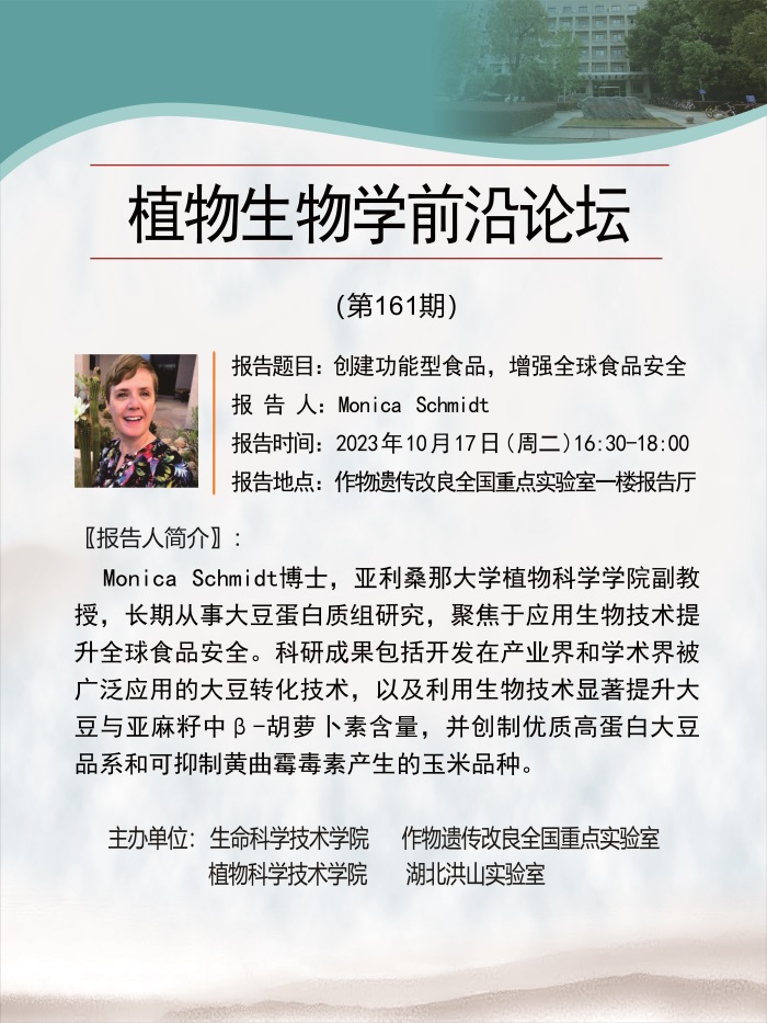 活动时间 报告题目 第161期植物生物学前沿论坛