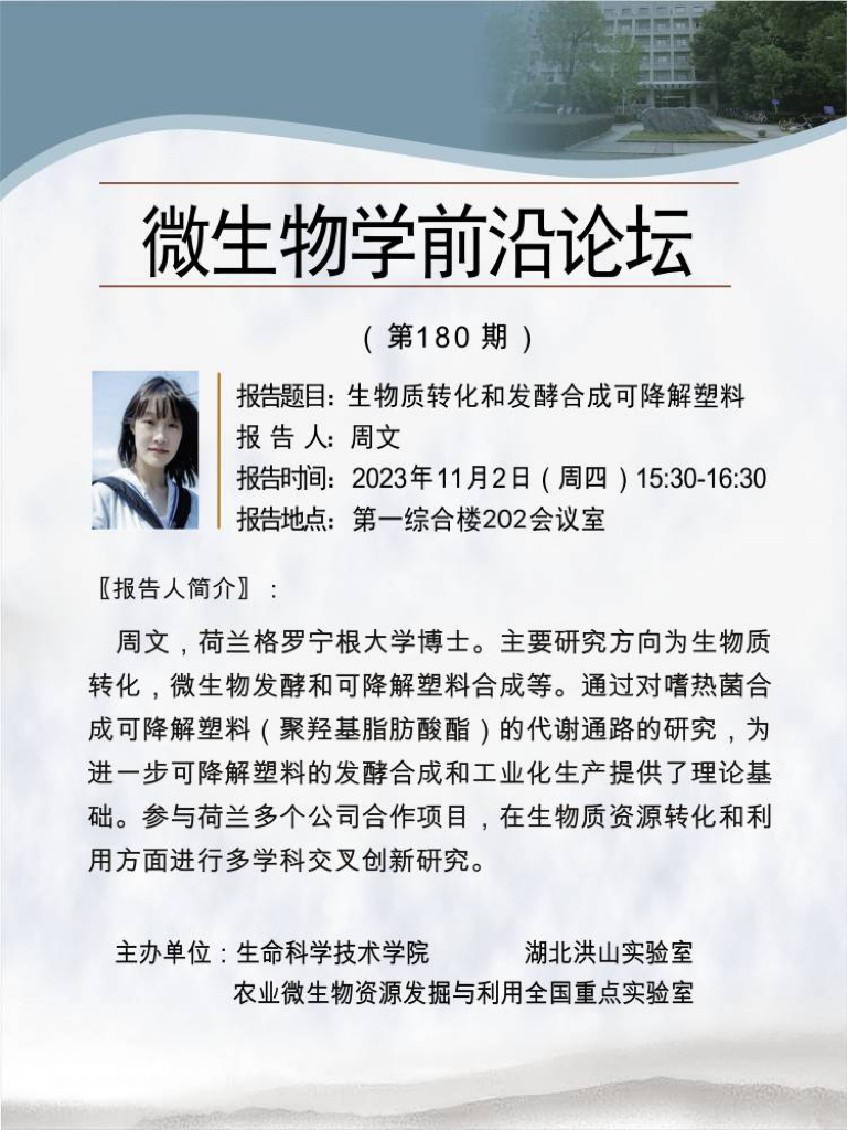 活动时间 报告题目 第180期微生物学前沿论坛