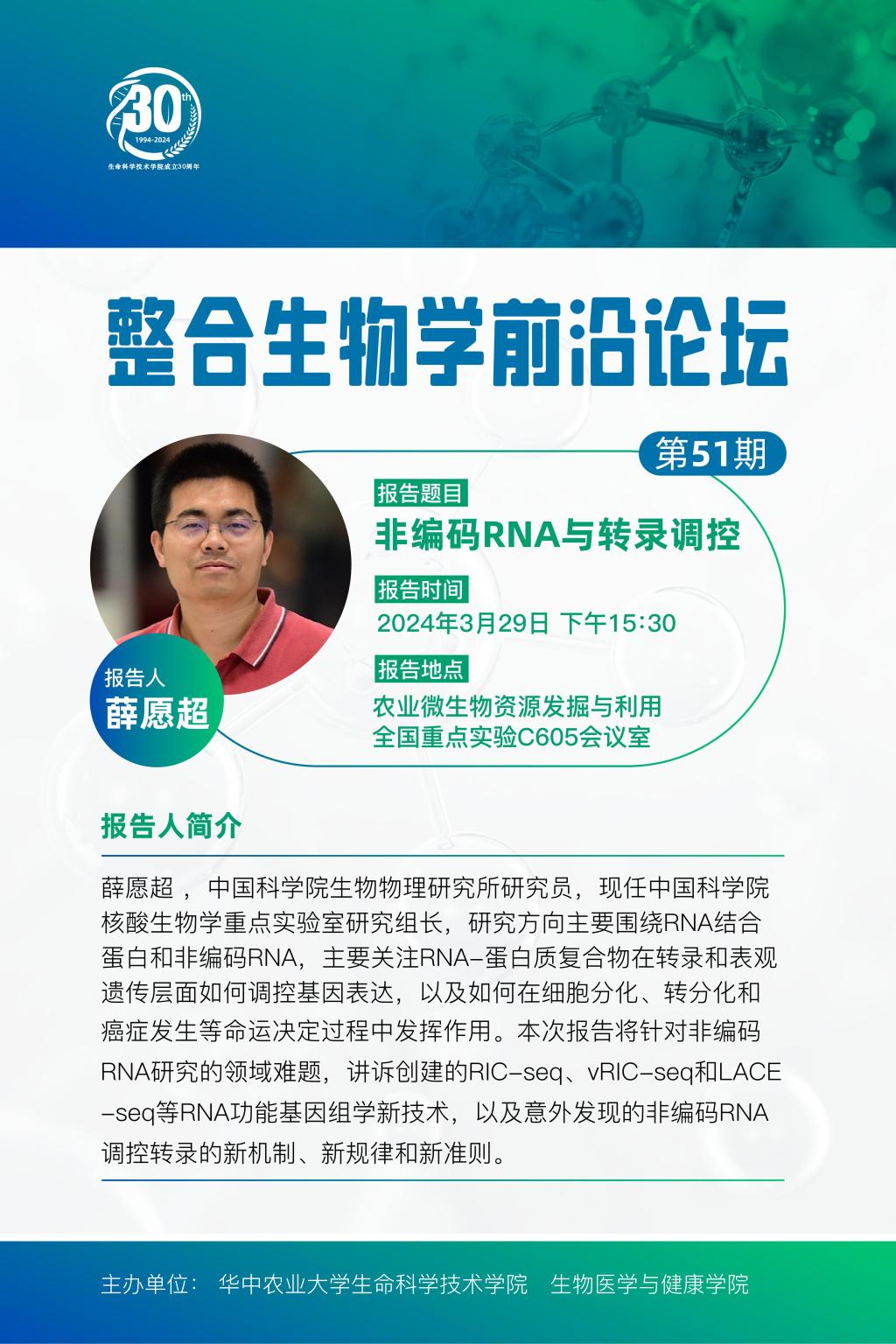 活动时间 报告题目 第51期整合生物学前沿论坛