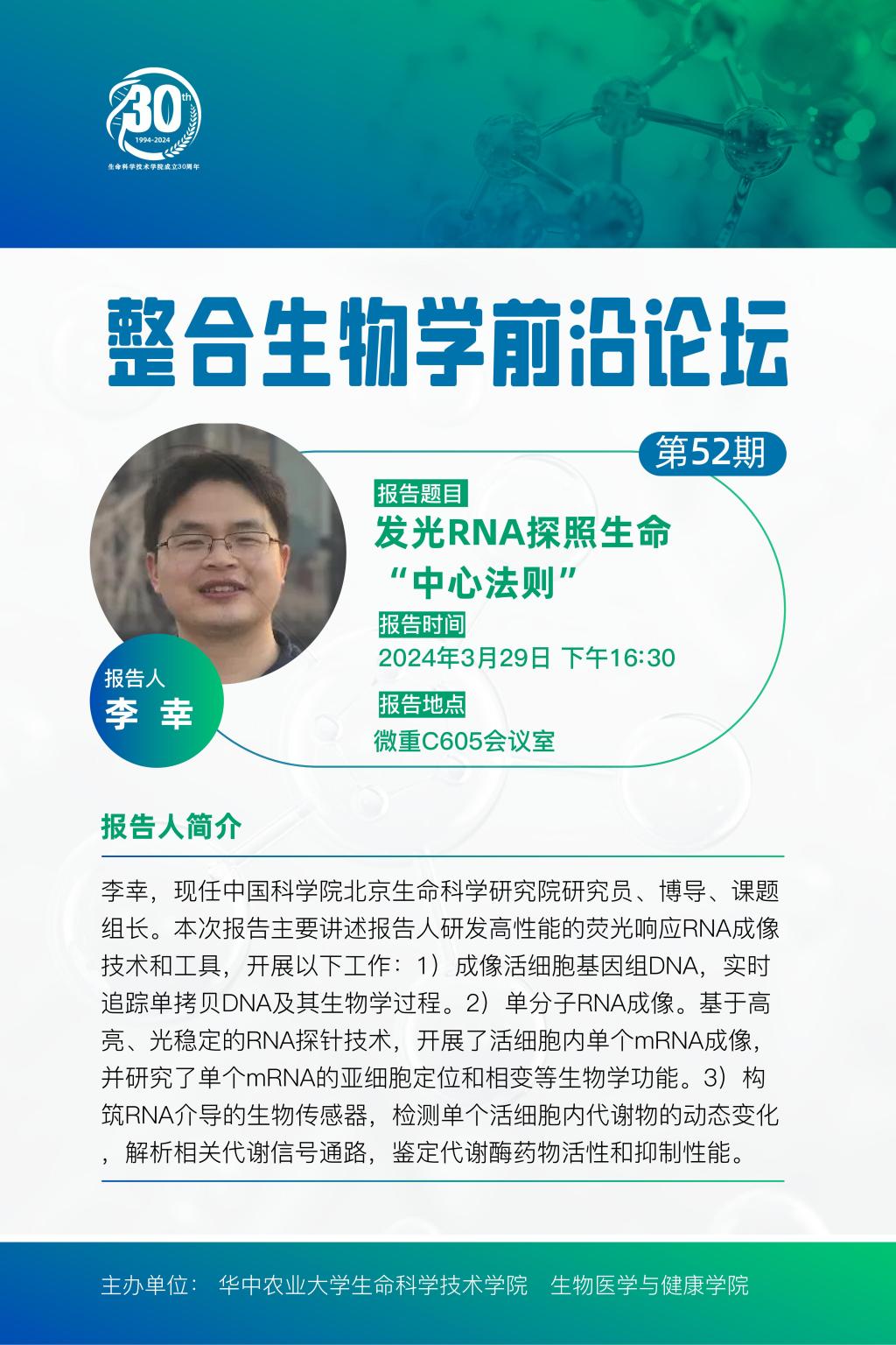 活动时间 报告题目 第52期整合生物学前沿论坛