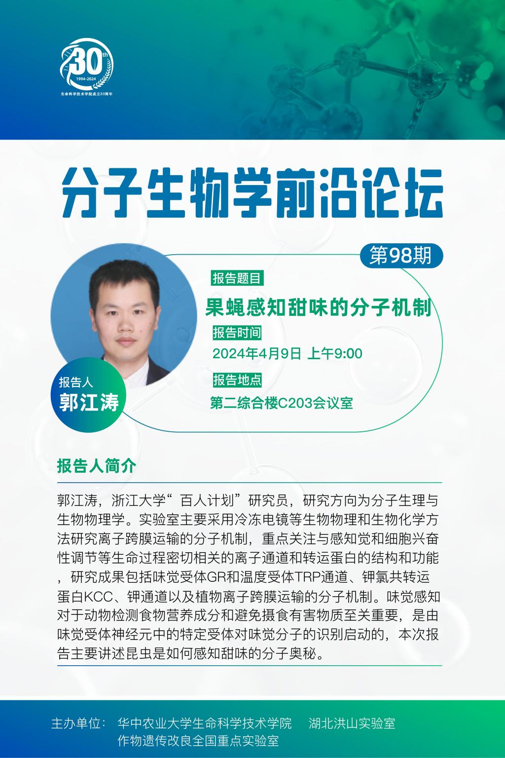 活动时间 报告题目 第98期分子生物学前沿论坛