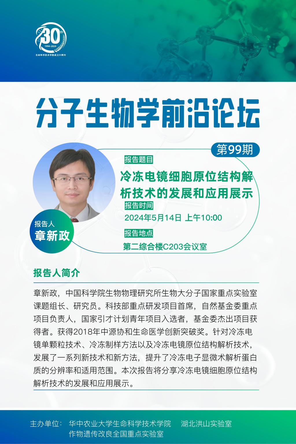 活动时间 报告题目 第99期分子生物学前沿论坛
