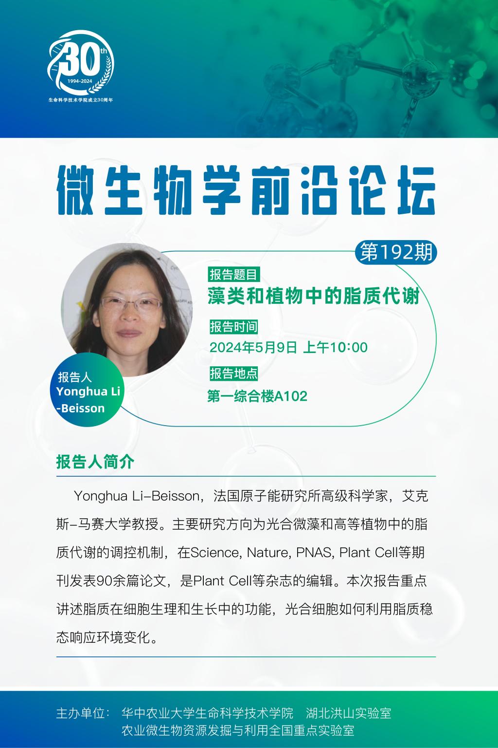 活动时间 报告题目 第192期微生物学前沿论坛