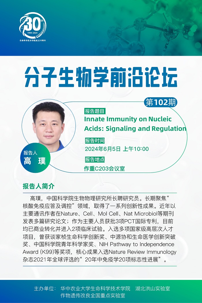 活动时间 报告题目 第102期分子生物学前沿论坛