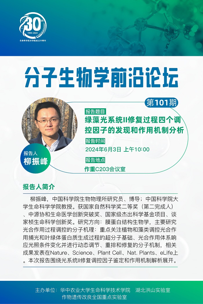 活动时间 报告题目 第101期分子生物学前沿论坛