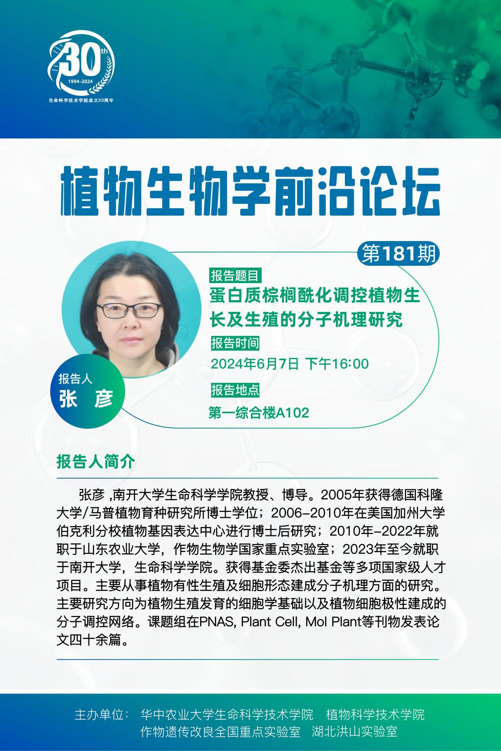 活动时间 报告题目 第181期植物生物学前沿论坛