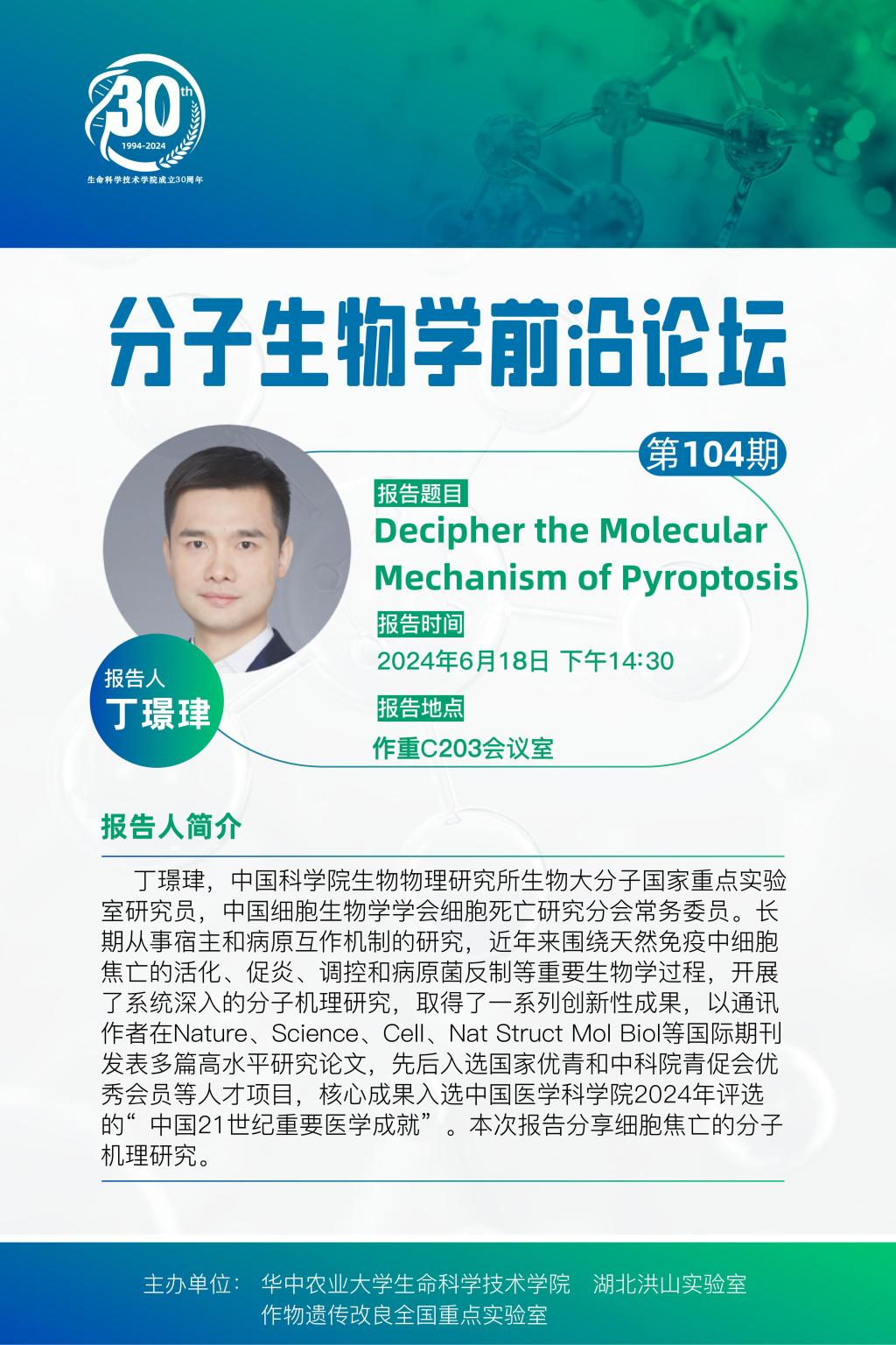 活动时间 报告题目 第104期分子生物学前沿论坛