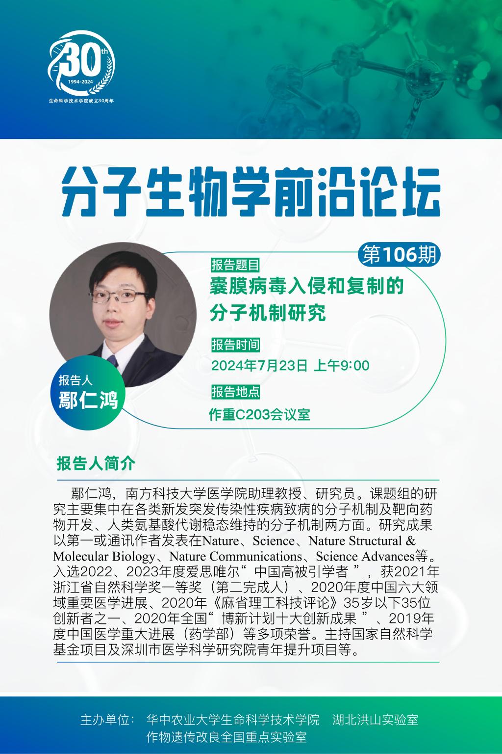 活动时间 报告题目 第106期分子生物学前沿论坛