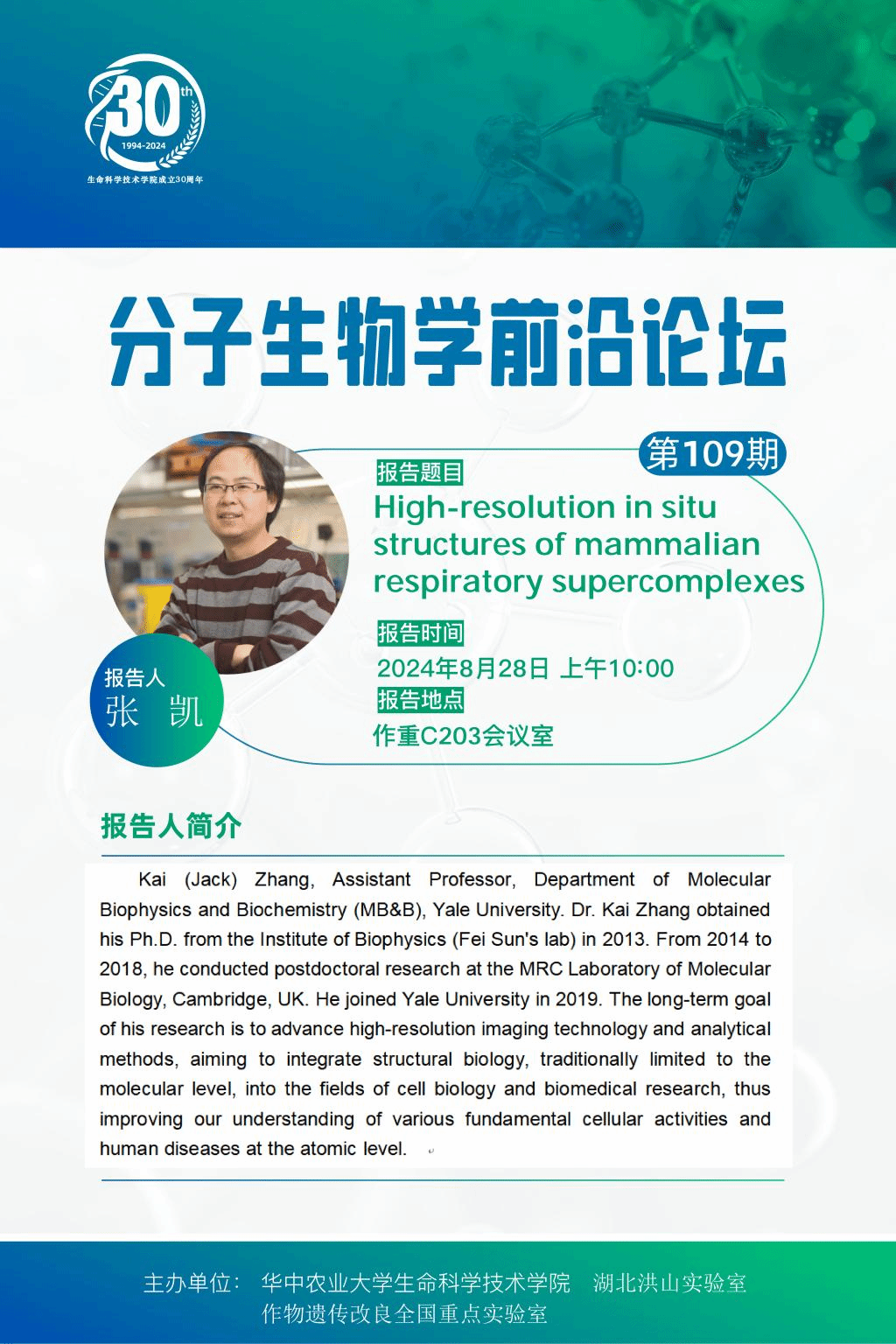 活动时间 报告题目 第109期分子生物学前沿论坛