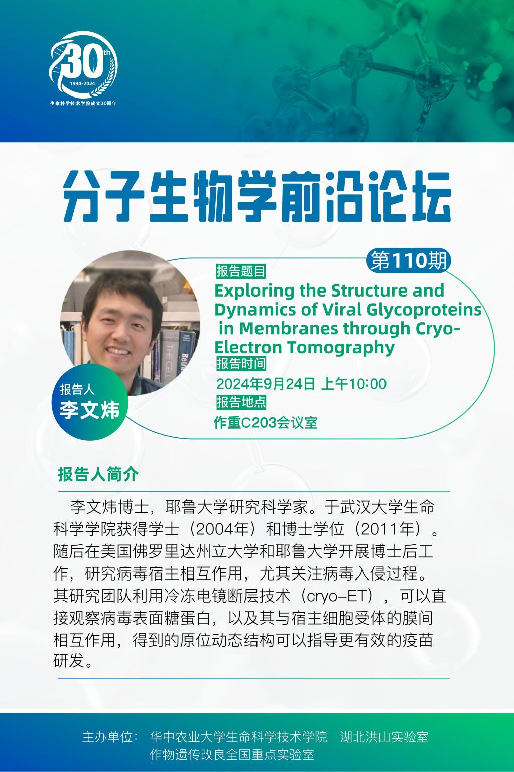活动时间 报告题目 第110期分子生物学前沿论坛