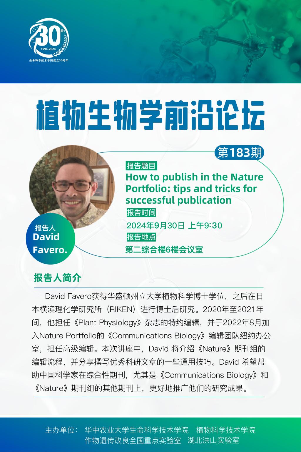 活动时间 报告题目 第183期植物生物学前沿论坛