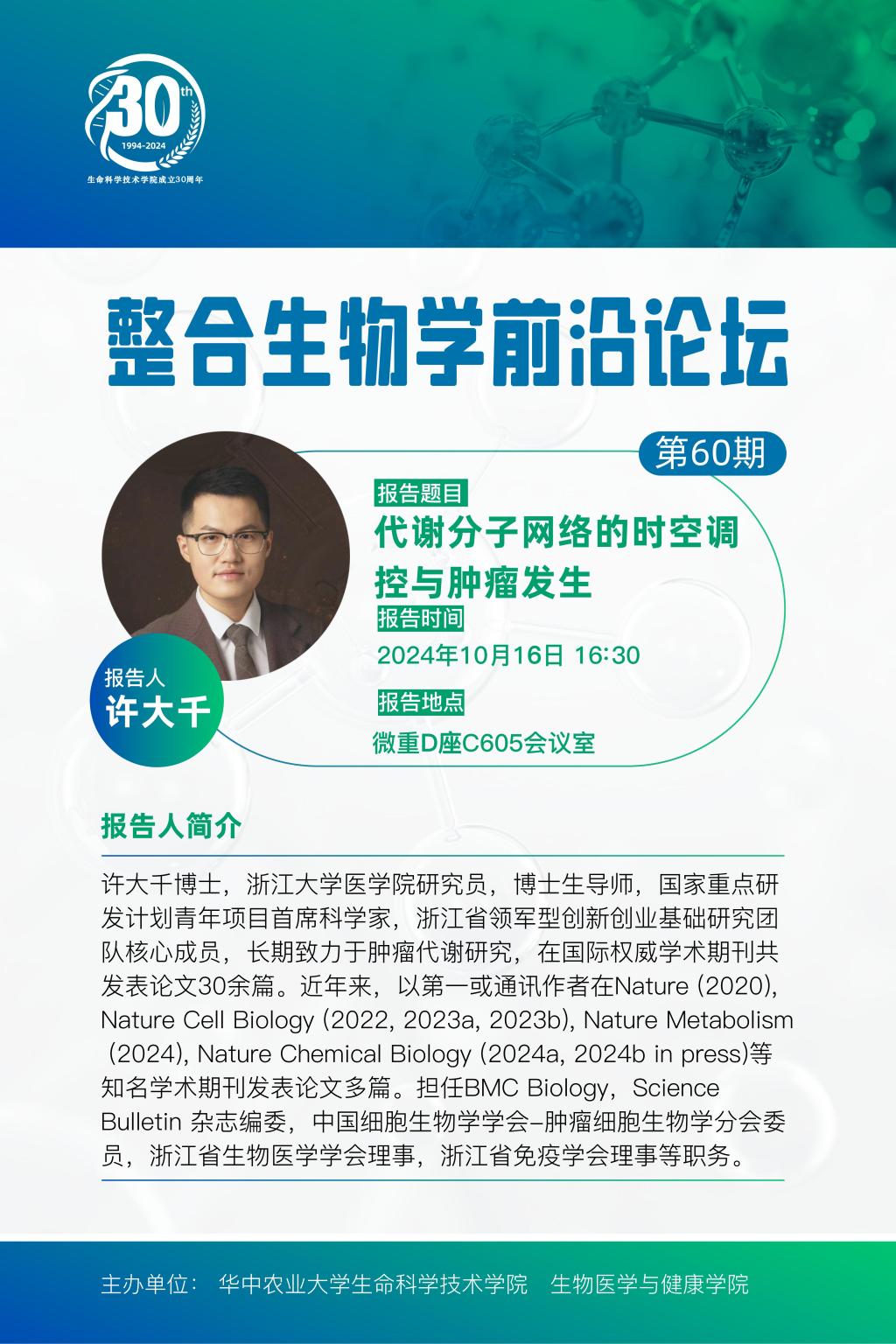 活动时间 报告题目 第60期整合生物学前沿论坛