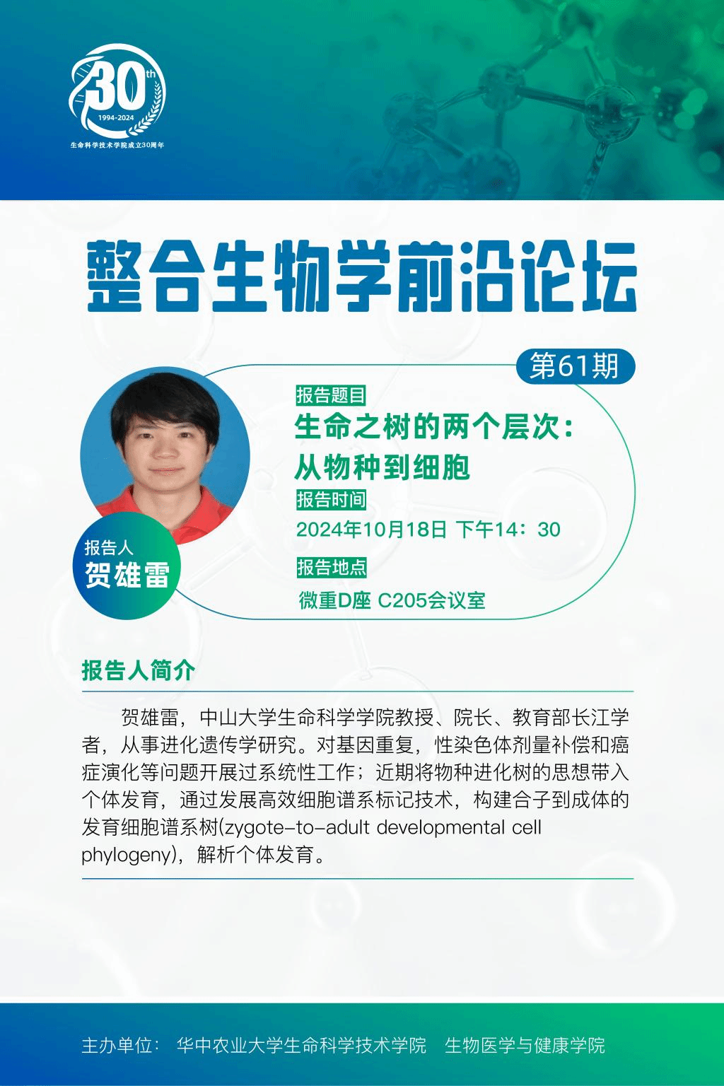 活动时间 报告题目 第61期整合生物学前沿论坛