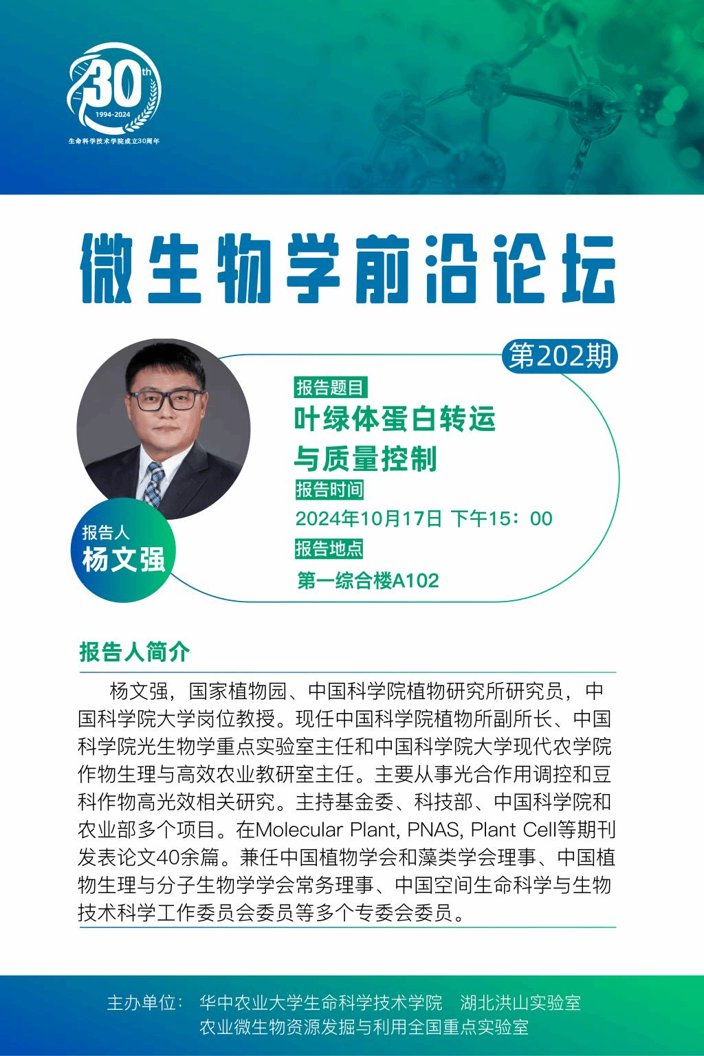 活动时间 报告题目 第202期微生物学前沿论坛