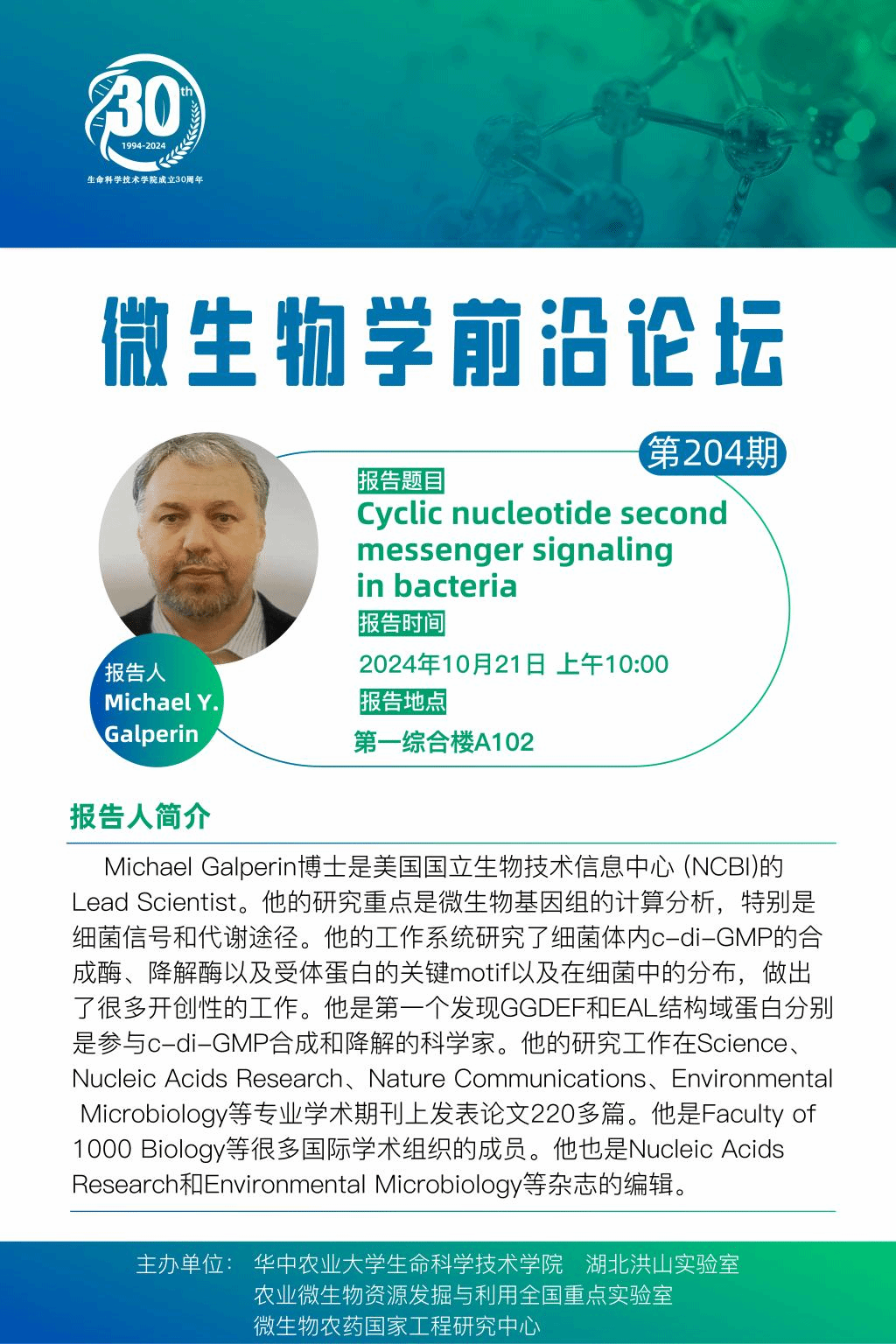 活动地点 报告人 Michael Y. Galperin