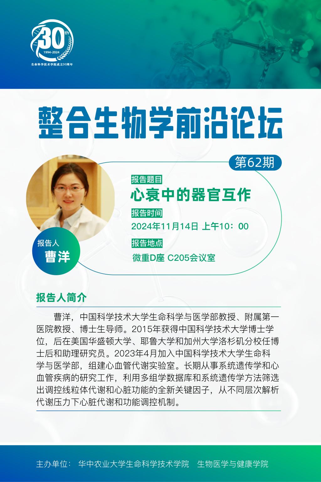活动时间 报告题目 第62期整合生物学前沿论坛