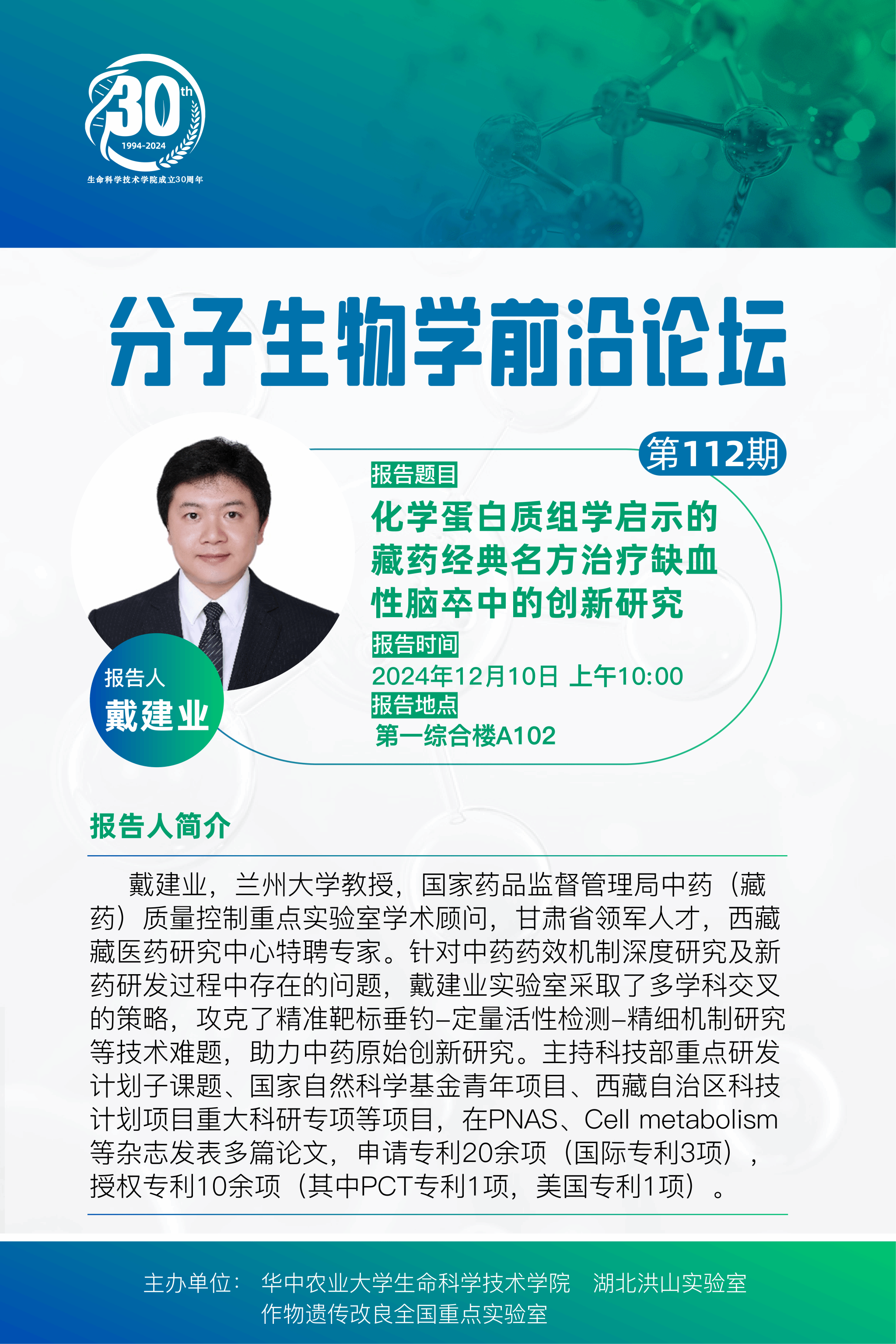 活动时间 报告题目 第112期分子生物学前沿论坛