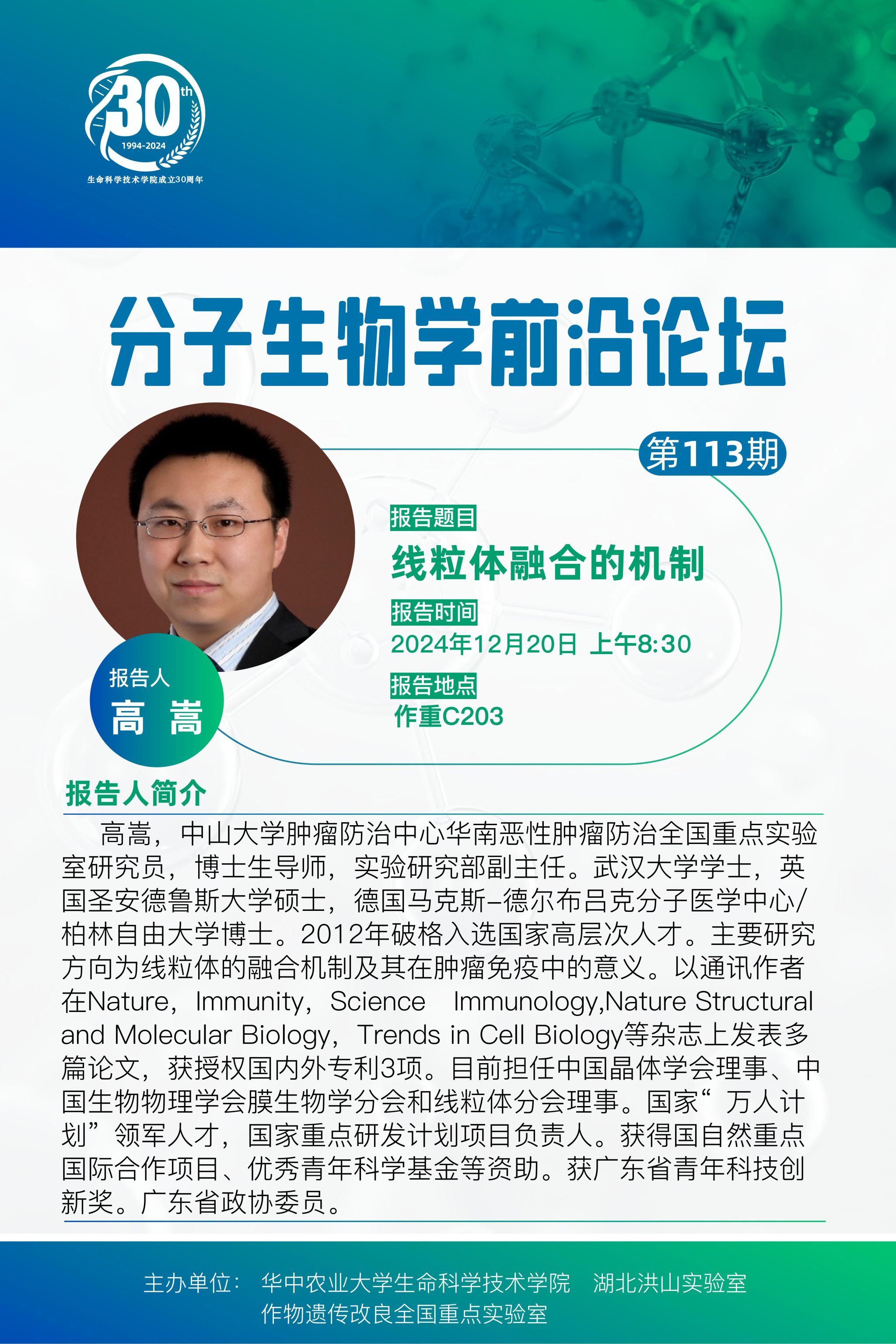 活动时间 报告题目 第113期分子生物学前沿论坛