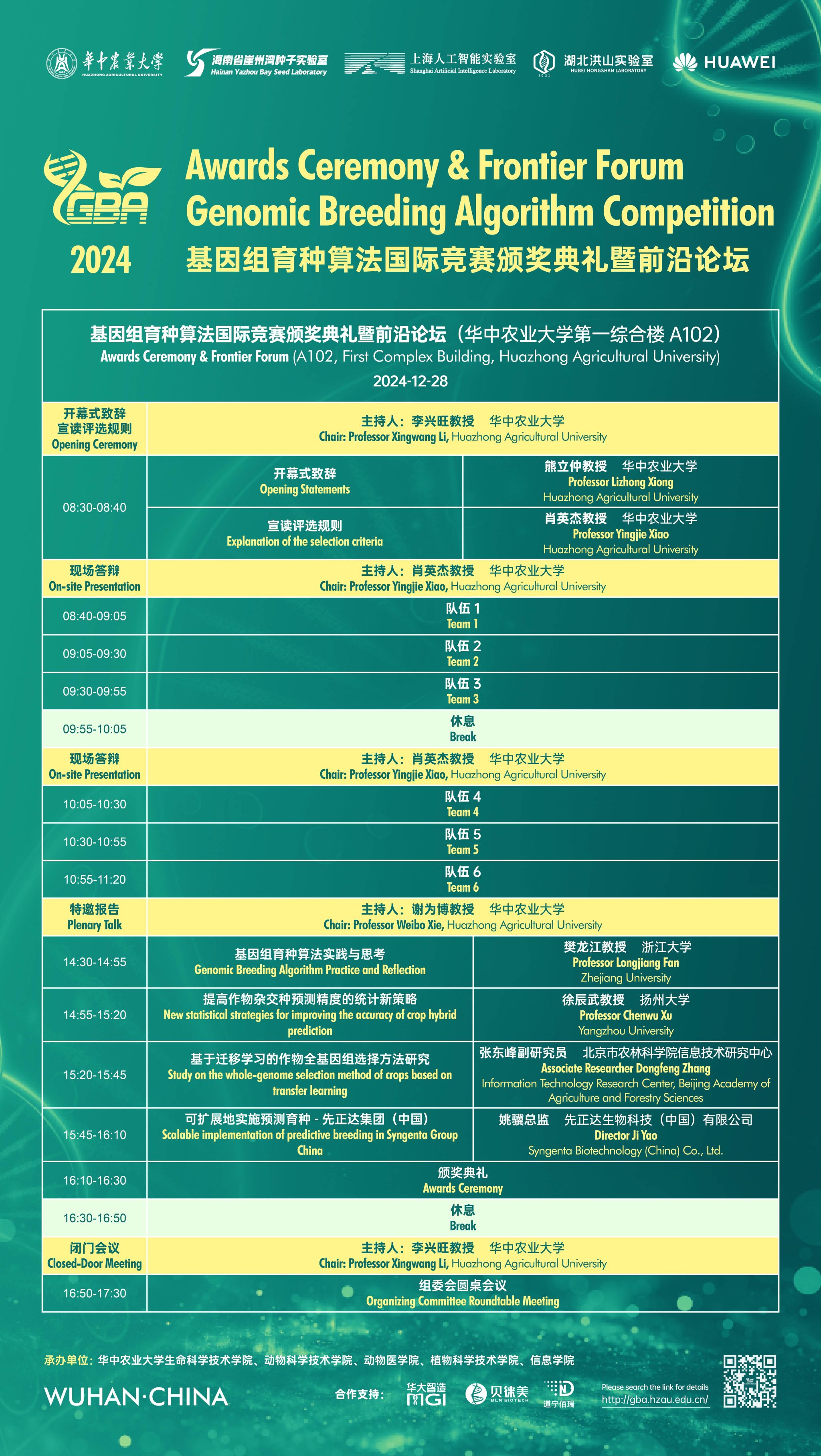 活动时间 报告题目 基因组育种算法国际竞赛颁奖典礼暨前沿论坛