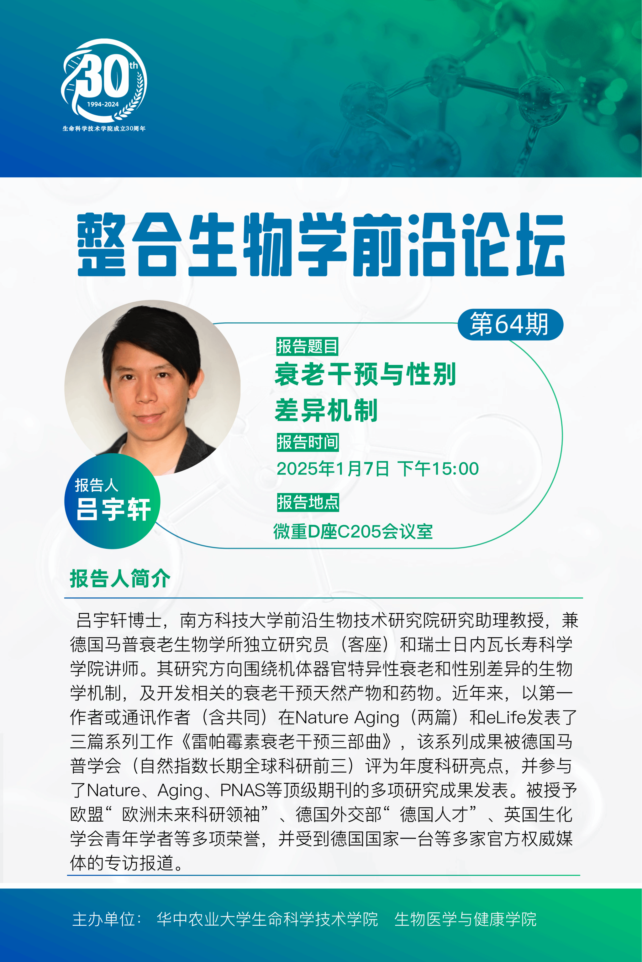 活动时间 报告题目 第64期整合生物学前沿论坛