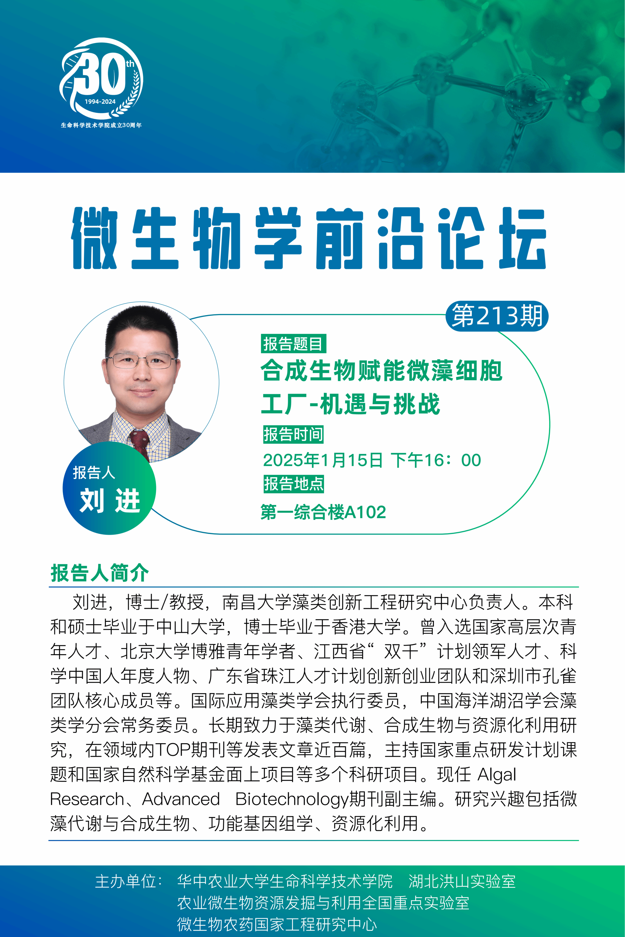 活动时间 报告题目 第213期微生物学前沿论坛