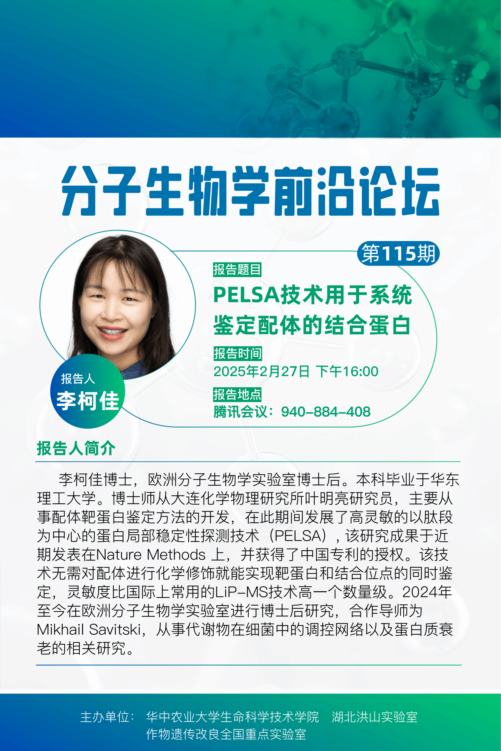 活动时间 报告题目 第115期分子生物学前沿论坛