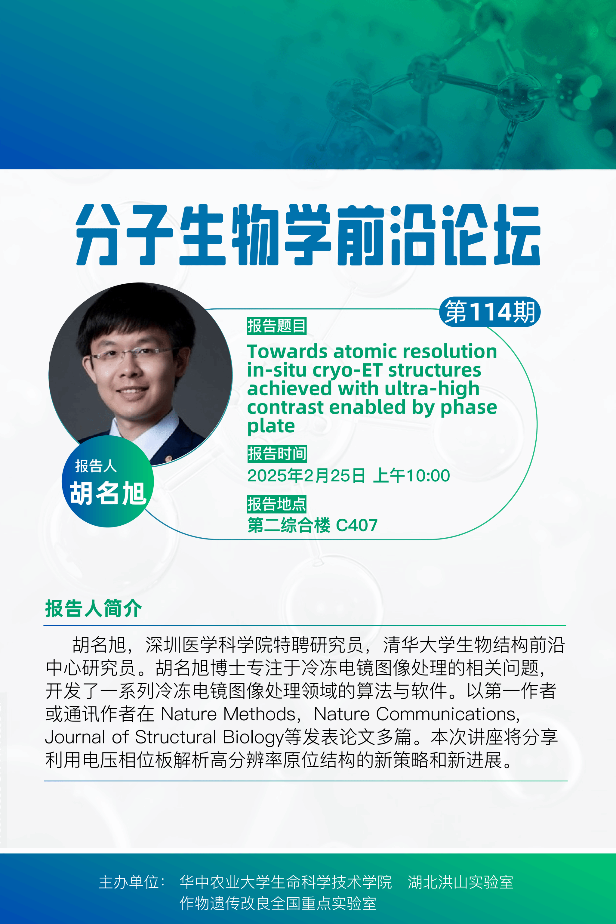 活动时间 报告题目 第114期分子生物学前沿论坛