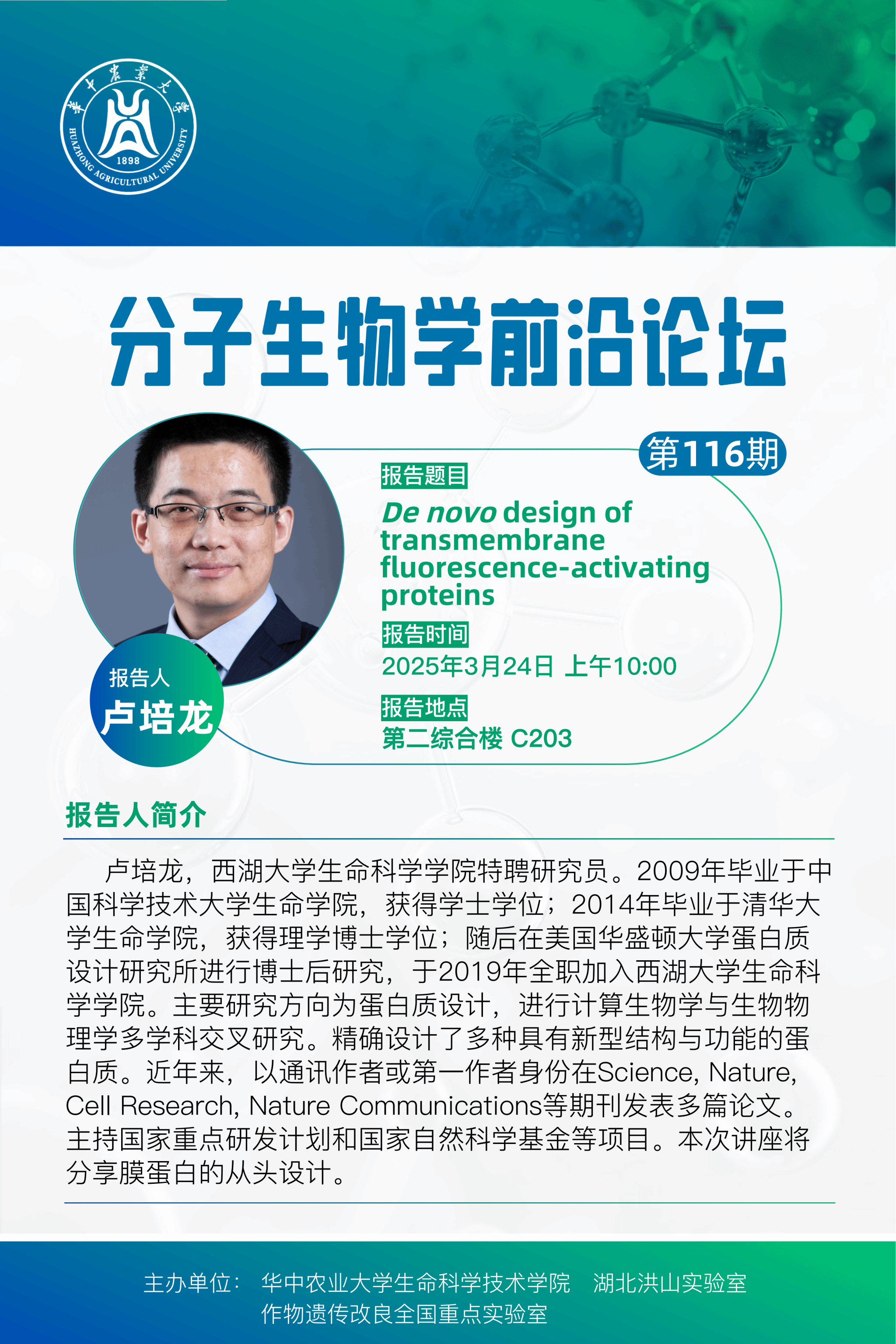 活动时间 报告题目 第116期分子生物学前沿论坛