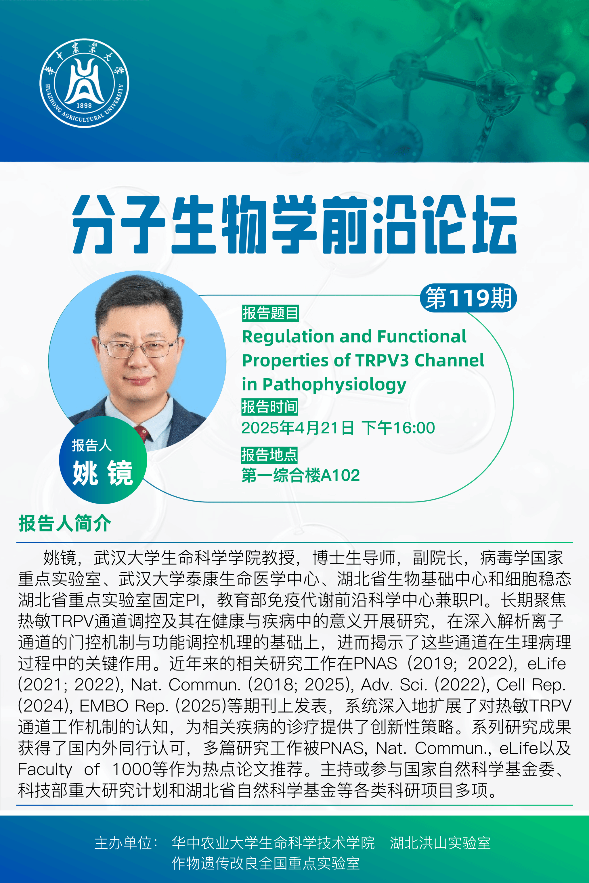 活动时间 报告题目 第119期分子生物学前沿论坛