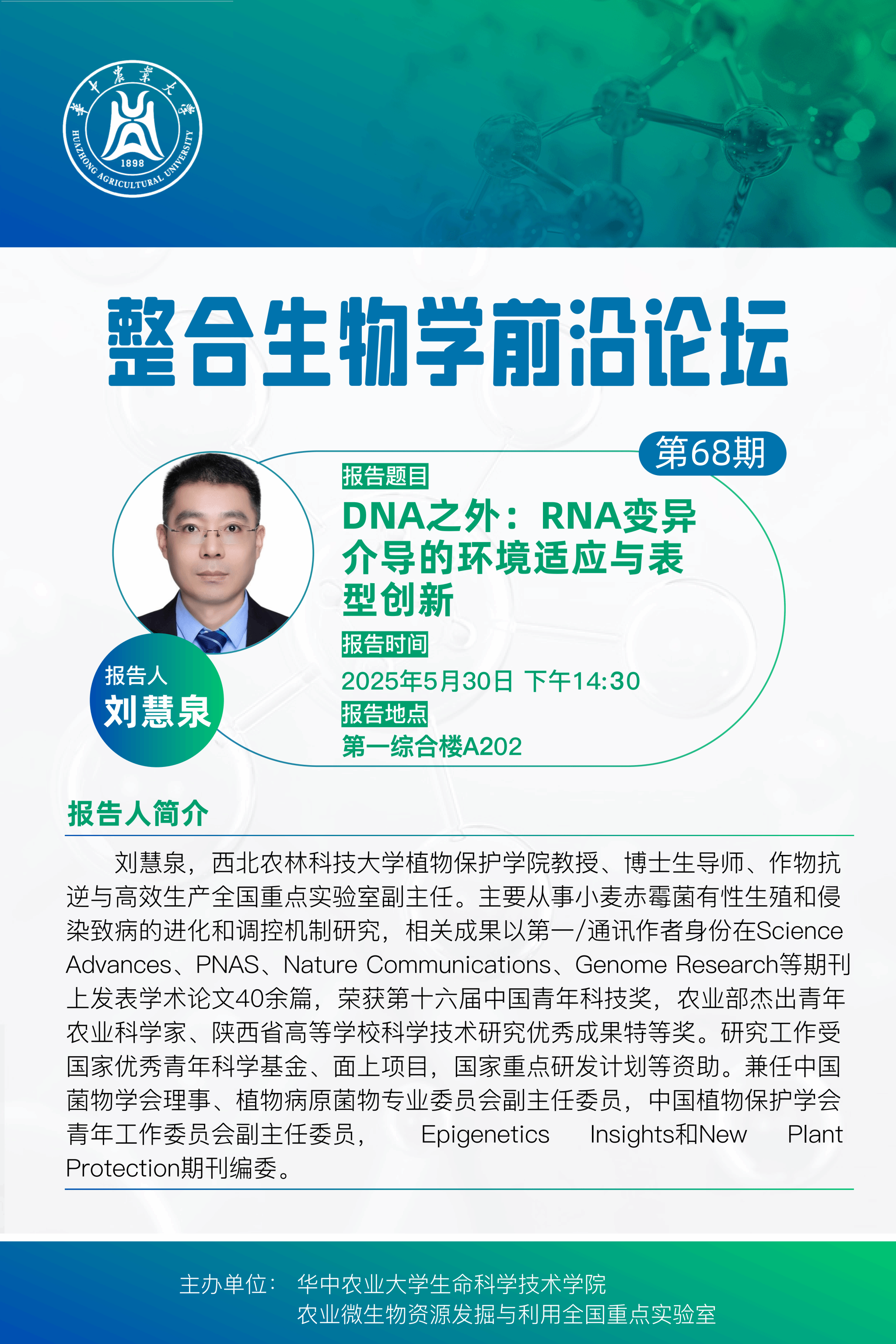 活动时间 报告题目 第68期整合生物学前沿论坛