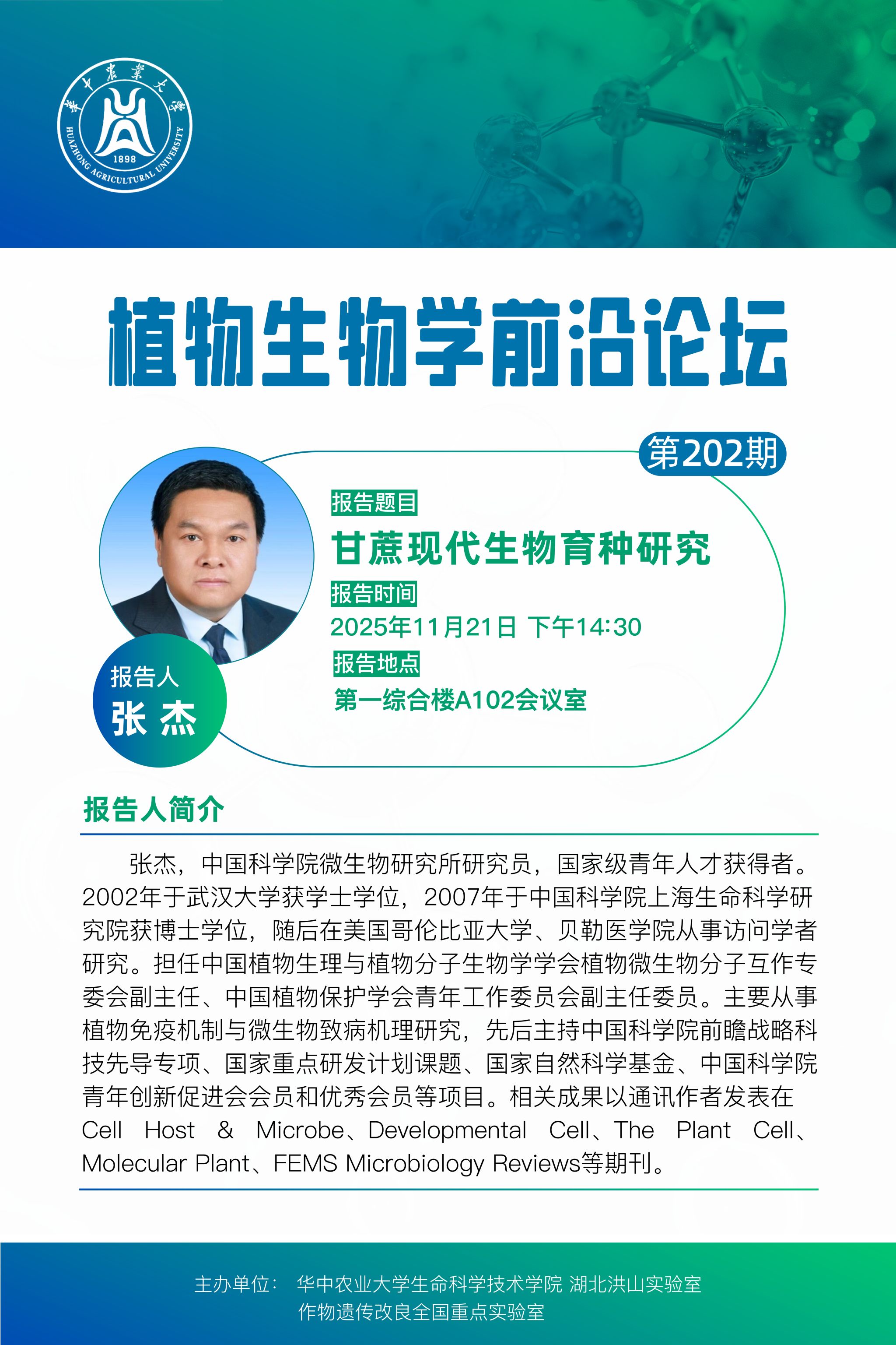 活动时间 11月21日下午14:30 报告题目 第202期植物生物学前沿论坛