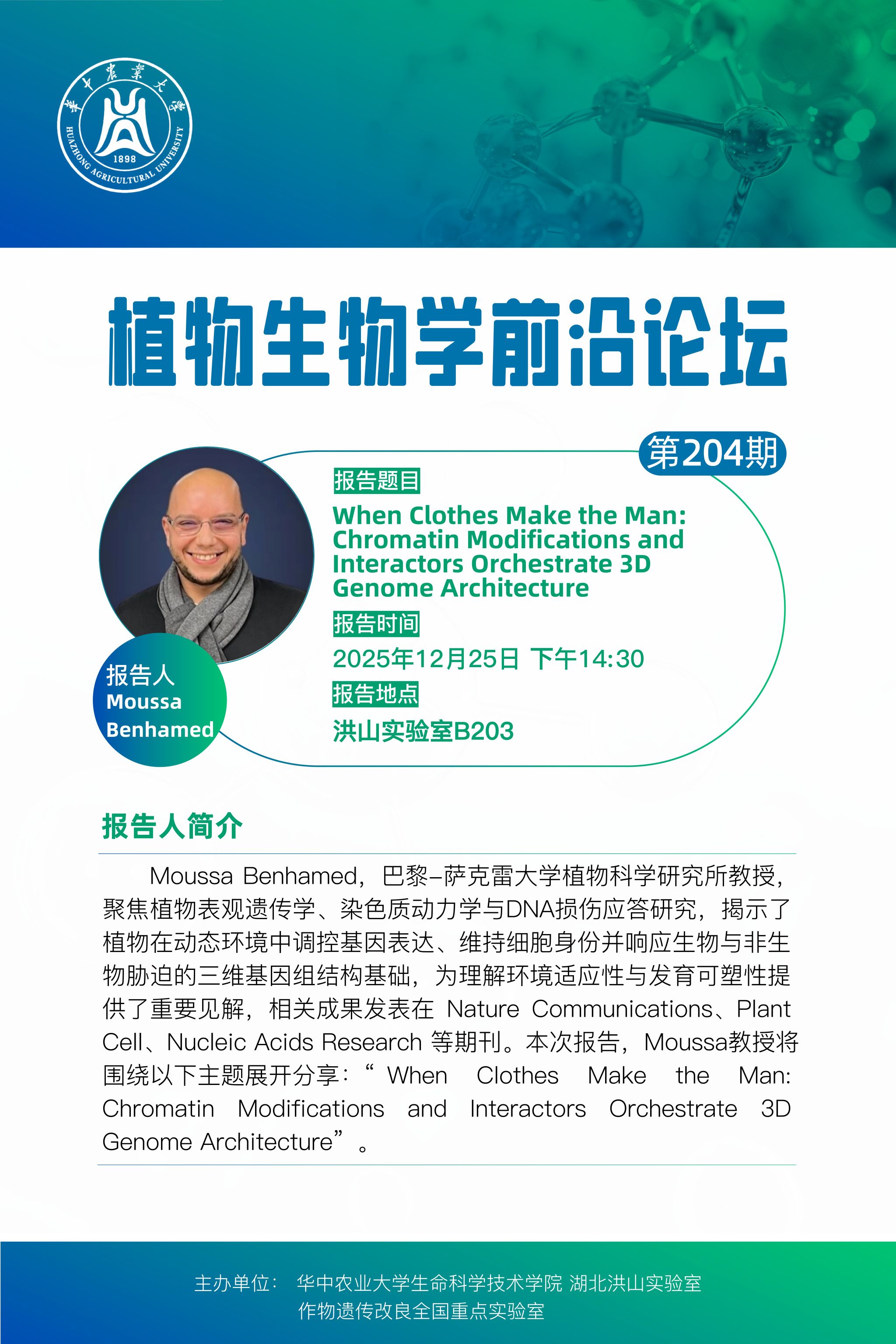 活动时间 2025年12月25日 下午14:30 报告题目 第204期植物生物学前沿论坛