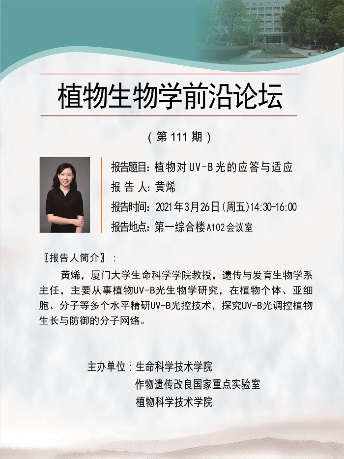 活动时间 报告题目 植物对UV-B光的应答与适应