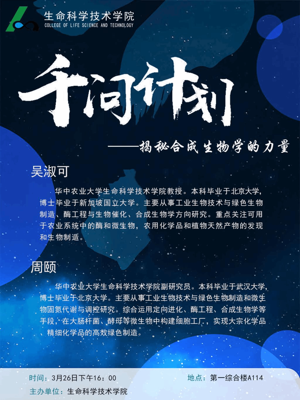 中国·湖北·武汉 南湖狮子山街一号430070 Tel:+86-27-87287308 E-mail:bio@mail.hzau.edu.cn