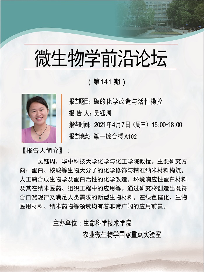 活动时间 报告题目 酶的化学改造与活性操控