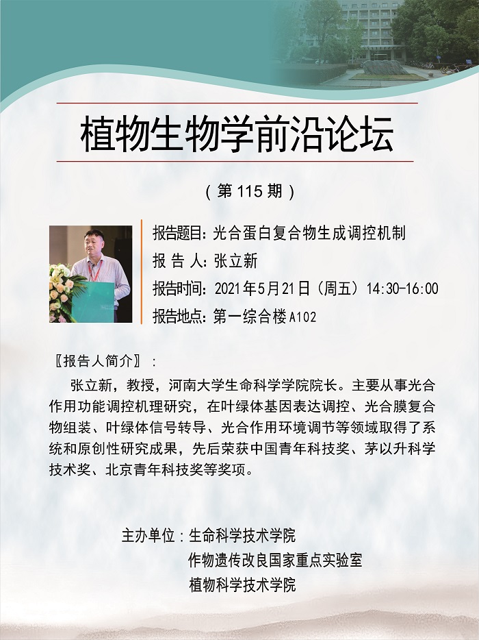 活动时间 报告题目 光合蛋白复合物生成调控机制
