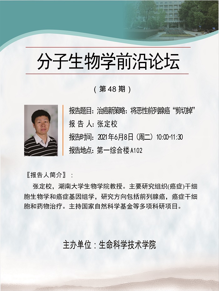 活动时间 报告题目 治癌新策略:将恶性前列腺癌“剪切掉”